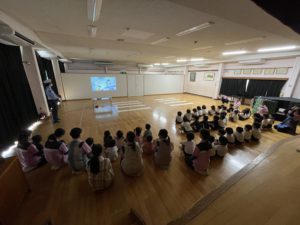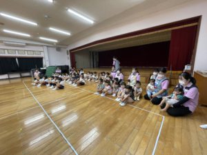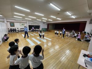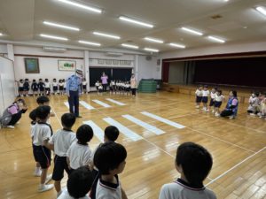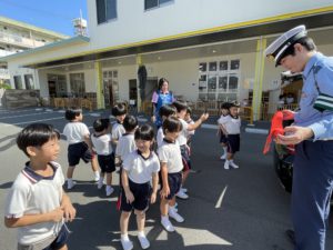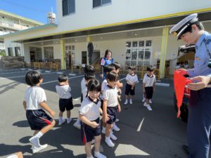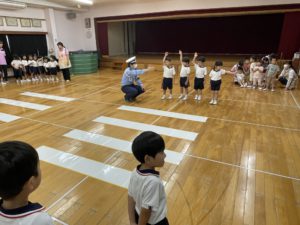 交通安全課の森重さんに来ていただいて交通ルールについて楽しく学ぶ事が出来ました