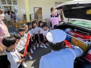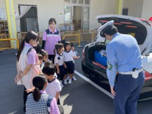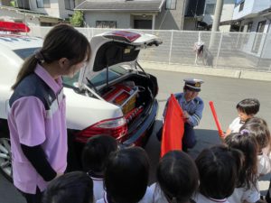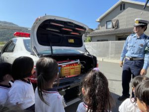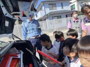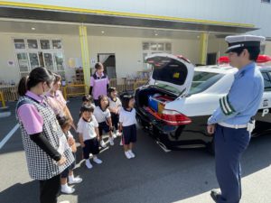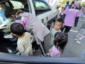 その後はパトカーに乗ったり色んな装備について教えてもらったりなかなか無い体験に子どもたちもとても楽しそうでした