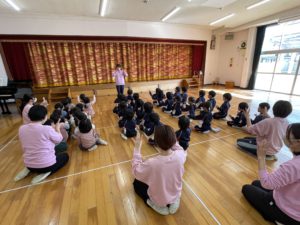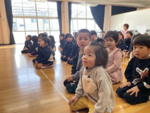 終了式を行いました、ひとつ上のクラスに進級する在園児さんたち、とってもよいお返事で進級への気持ちもバッチリでしたよ